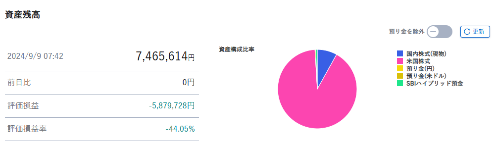 毎日投資報告(2024/9/9) 投資 X Facebook はてブ LINE コピー2024.09.092024.09.10目指せ金融資産4億!どうもあちゃんです。本日も変化なし!為替が円高方向ですね。さあ、ブラックマンデーくる!?もう勘弁してよ・・・。