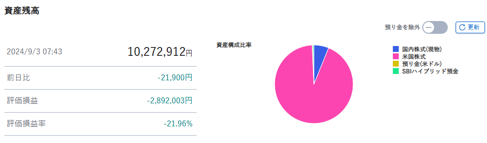 毎日投資報告(2024/9/3) 投資 X Facebook はてブ LINE コピー2024.09.03目指せ金融資産4億!どうもあちゃんです。毎日投資報告。っていいつつ昨日投稿忘れました・・・。ま、休場だったしねー。今日の報告です。